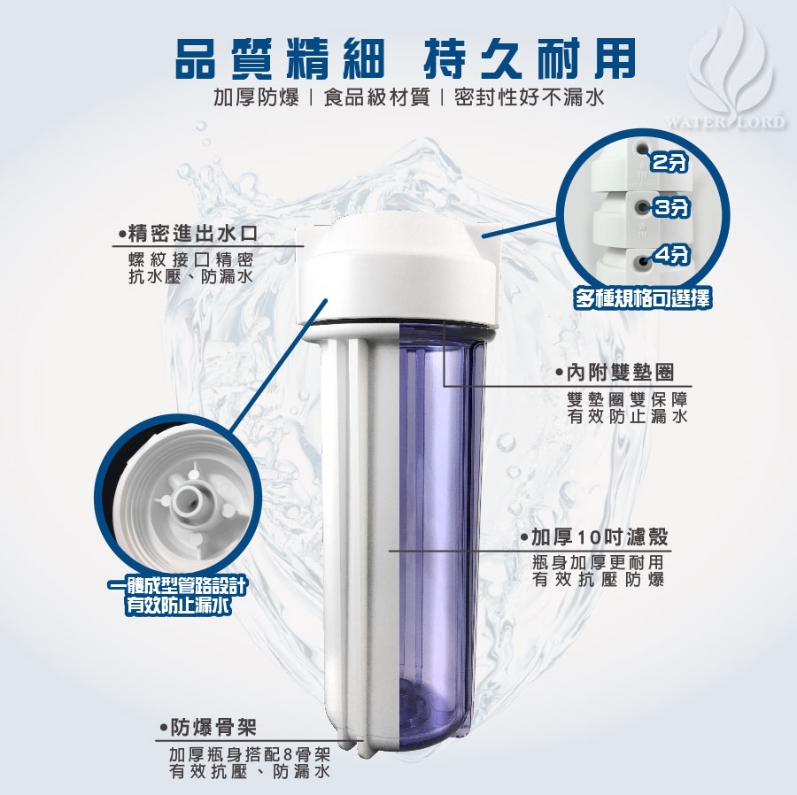 ข้อมูลจำเพาะของตัวกรองที่ใช้งานได้: เหมาะสำหรับองค์ประกอบตัวกรองมาตรฐานสากล 10 นิ้ว (9.7/8 นิ้ว)