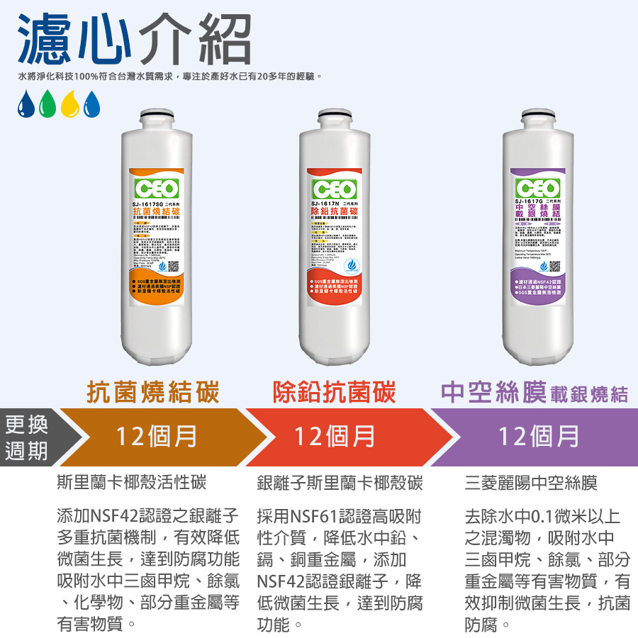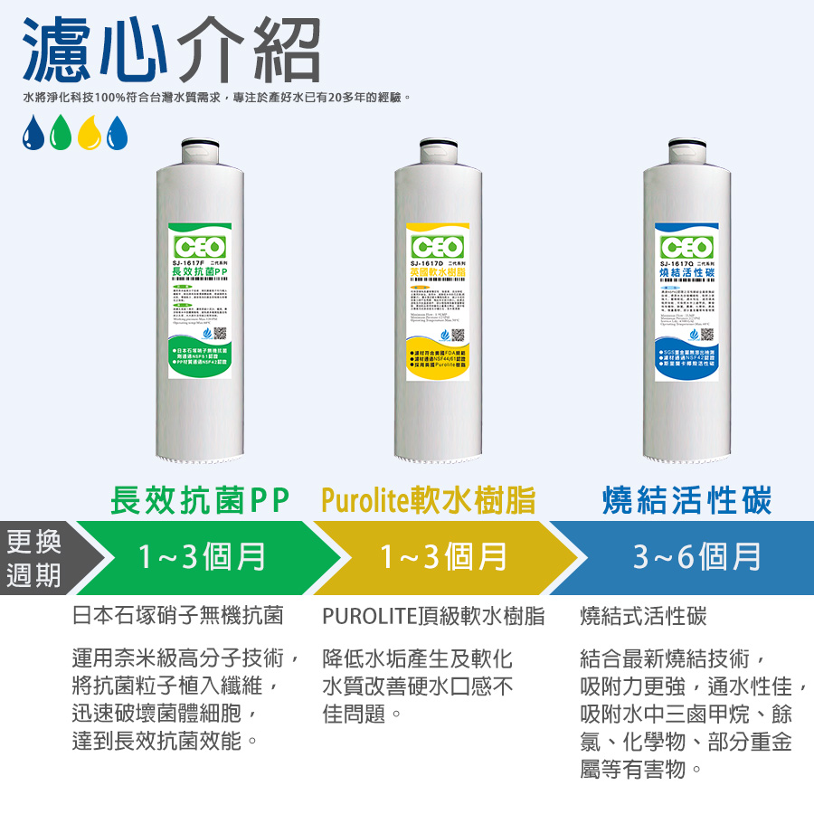 องค์ประกอบตัวกรอง SJ-1617D |เรซินแบบปล่อยเร็วรุ่นที่สอง [มาตรฐาน NSF ที่ใช้กันทั่วไป]